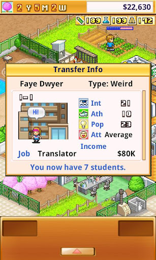Wohoo, selamat malam sahabat-sahabat SAD Blog semua. Kali ini admin akan sharing game lawas yang pasti akan membuat kalian semua ketagihan memainkannya. This is it ! Pocket Academy (Android), adalah sebuah permainan Strategi produksi Kairosoft. Pada game ini kita harus mewujudkan impian kepala sekolah untuk membuat lulusan sekolah miliknya menjadi lulusan terbaik. Mulai dari menentukan kelas, fasilitas, guru, sampai pelajaran tambahan pun bisa kita tentukan sendiri. Pastinya kalian semua penasaran kan? nah nih admin kasih liat screenshot dari Game Keren ini :